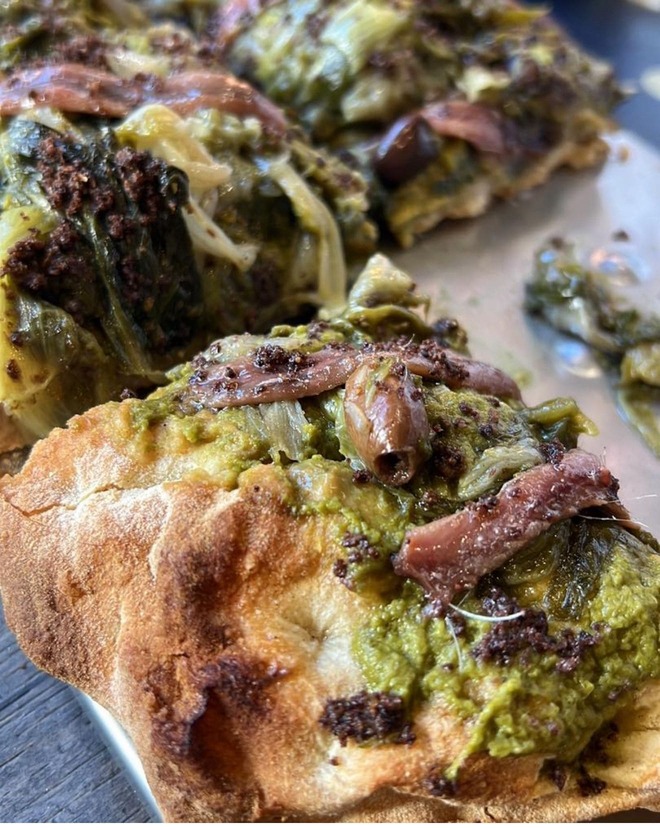 Un giusto compromesso tra la pizza in pala e la pinsa e che eredita, da entrambe, croccantezza e digeribilità grazie anche alla scelta saggia delle farine per l’impasto e nella lievitazione con utilizzo di pre-fermento. La “palella”, come Tancredi ama definire la categoria appena inserita in carta, ha per caratteristica proprio il suono onomatopeico dato dallo “scricchiolio” al primo morso, con topping appetitosi e indovinati.