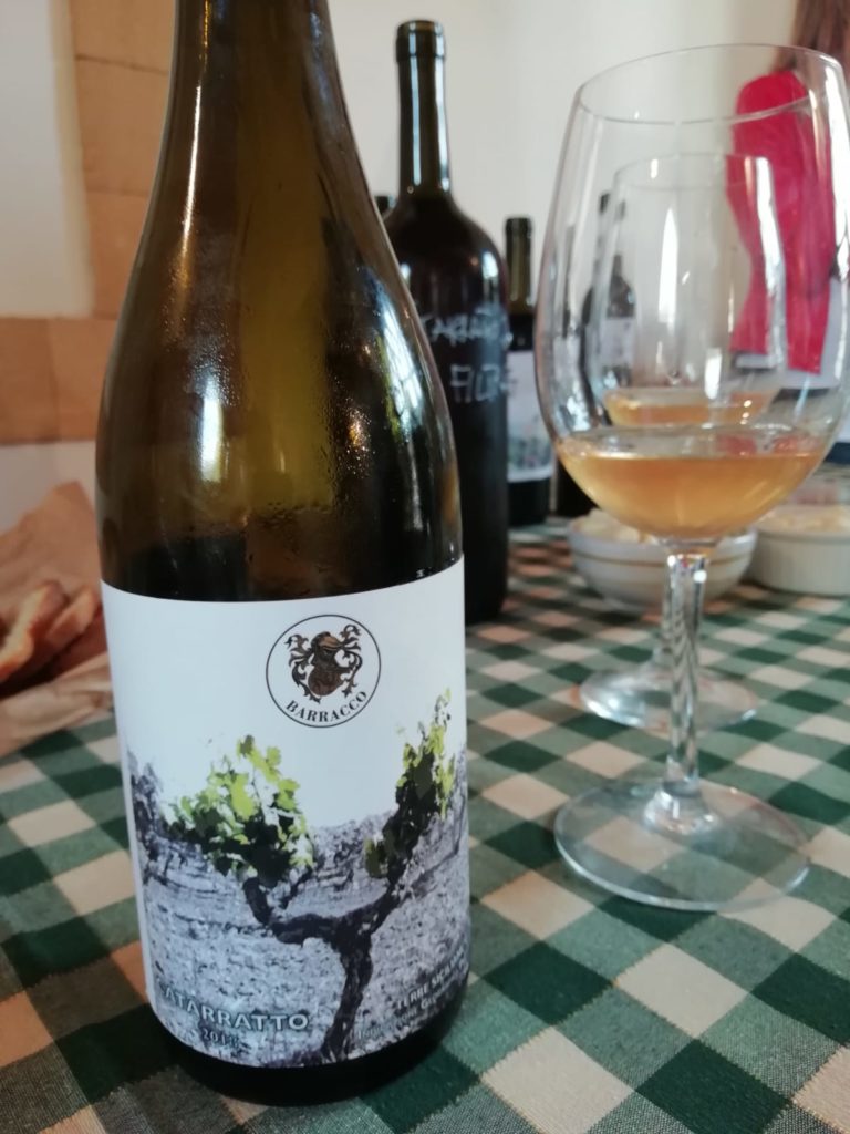 Ci si sposta un po’ più a sud, di circa trenta km, per trovare l’azienda agricola Francesca Barracco (con due “c”, da non confondere con il giovane e già carismatico Nino di Marsala). Si tratta di una realtà dalla lunga storia e di dimensioni ragguardevoli, che possiede 42 ettari di vigne a due passi dal mare di Mazara del Vallo e che fino al 2016 conferiva le uve ad altri produttori. Nel 2017 Roberto Bruno, discendente della famiglia da parte materna, decide di fare il “suo” vino ed esce con questo notevolissimo Catarratto macerato sulle bucce per due giorni, un orange wine subito riconoscibile per via del colore (“l’uva contiene molto betacarotene”, spiega). Gli impianti utilizzati si trovano in contrada Minenno, dai suoli argillosi, con vigne di 50 anni, e da contrada Roccazzo, più sabbiosa e con piante più giovani.
