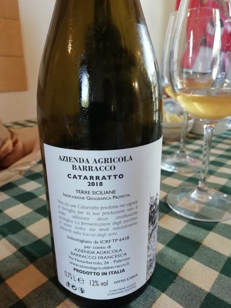 Più interlocutorio il Catarratto 2018, annata in cui si è scelto di non effettuare macerazione sulle bucce (“stiamo cercando di capire quale sia la soluzione migliore”), di bella espressione floreale (oleandro) e con lievi note casearie e balsamiche, ancora vinoso, di buona sapidità e frutto abbastanza netto (susina gialla). Un vino chiaramente all’inizio del suo percorso e ancora difficile da inquadrare.