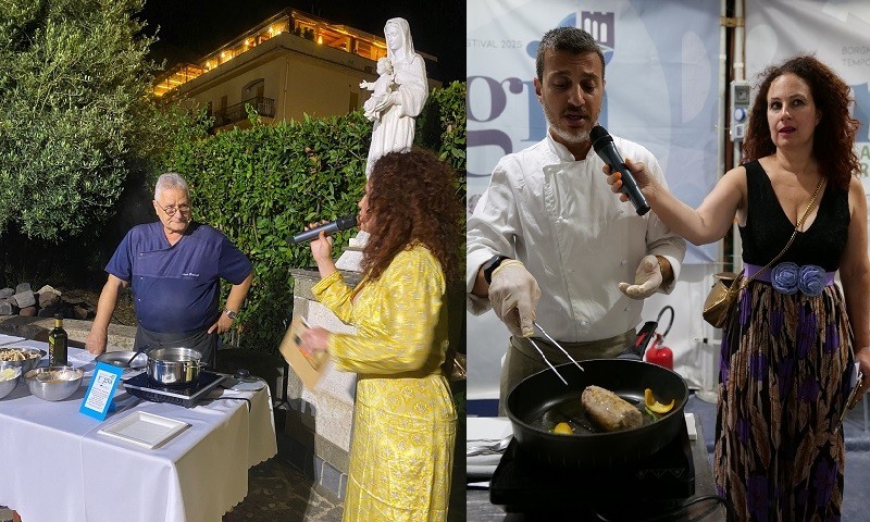 A Mazzarrà Sant’Andrea con il “titolare di Municipio” Carmelo Pietrafitta, dal 28 al 30 agosto, la festa è stata consacrata, nonostante il maltempo di giorno 30 agosto, proponendo la rock band Le Vibrazioni a Largo Manzoni con il frontman Francesco Sarcina in forma scoppiettante, nell’atmosfera saporita del Festival degli Agrumi. In questa cittadina, le straordinarie doti del florovivaismo sono sottolineate dalla presenza di oltre cento realtà produttive. E poi un luminare della medicina, dai natali mazzaresi, è il professore Davide D’Amico che è stato il primo chirurgo, a fine novembre 1990, ad eseguire il primo trapianto di fegato su una donna calabrese, accreditandosi come un’eccellenza con un bilancio di oltre 500 trapianti epatobiliari. Anche in questo caso, il Primo Cittadino si è prestato ai fornelli, anzi si è concesso di guarnire il pre – dessert con sablé croccante al pomodoro, arancia e rosmarino, yogurt naturale al verdello e marmellata di arancia e Kumquat. Ma lo chef Ricciardo ha voluto impreziosire il Cooking Show con un secondo piatto di carne (maialino marinato) agli agrumi nella bella Piazza Umberto I°. A coordinare gli angoli di dibattito del tour e di Cooking show è stata la giornalista Marcella Ruggeri.
