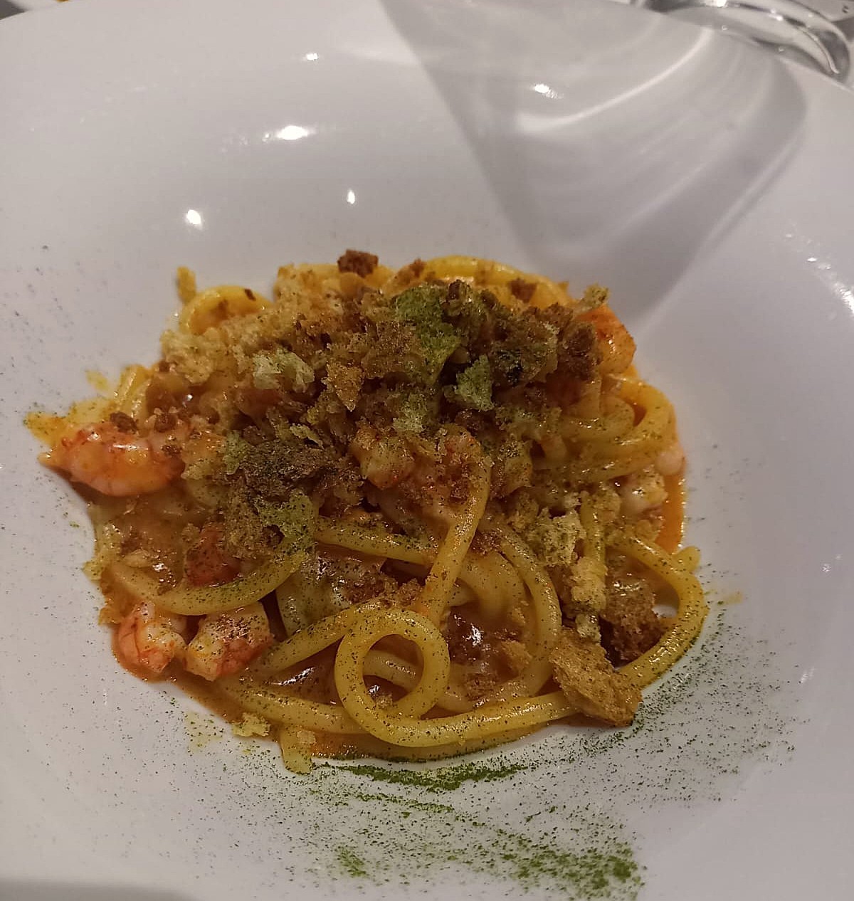 Citiamo quelli più apprezzati: il tonnarello di don Peppino (pomodoro, gamberi sgusciati, pane tostato e peperoncino), il mezzo pacchero con pescato del giorno e le alici di Menaica servite in bocconcini di focaccia con burrata.