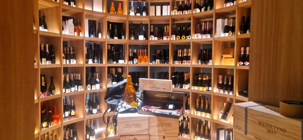 Abbiamo avuto modo di visitare questa nuova proposta nata dall’annessione alla struttura iniziale di ben 500 mq che hanno permesso di dar vita ad una mostra permanente di scatti fotografici del territorio, che introduce i clienti del Cinque Foglie ad una sala di degustazione riservata dove scaffali in legno accolgono migliaia di bottiglie provenienti da varie regioni italiane e diversi continenti. Questa enorme disponibilità di referenze stupisce e affascina il visitatore ignaro invitandolo a provare una delle tante etichette presenti, con la possibilità di prenderla dallo scaffale e quando questa vasta scelta crea difficoltà l’intervento di Ivan Mendana Fernandez, il marito della figlia di Giovanni, Francesca, permette di rassicurare l’ospite indirizzandolo in quello che è per lui più consono.