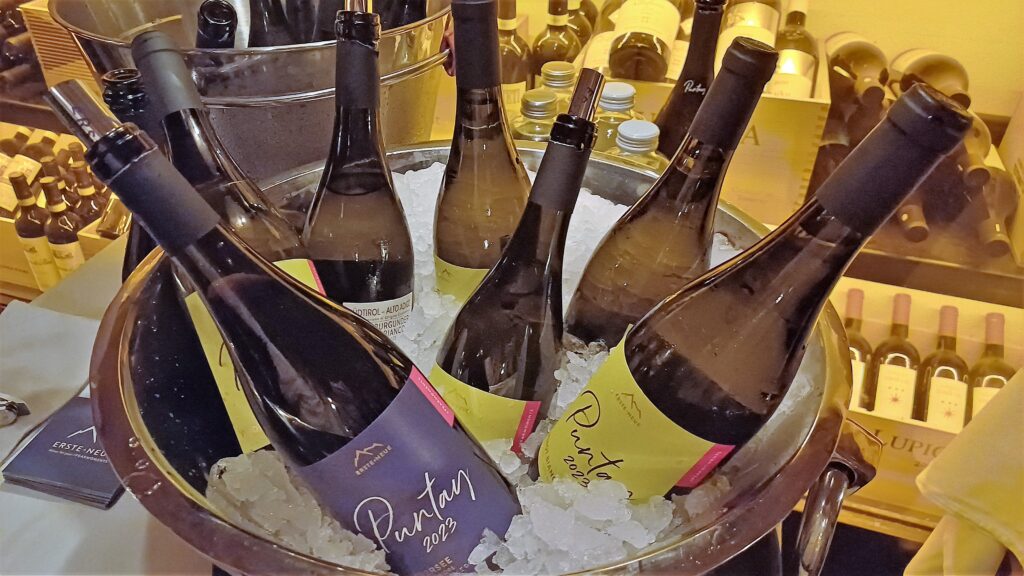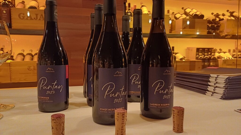 Di seguito la degustazione dei vini della linea Puntay, annata 2023 per Pinot Bianco, Chardonnay, Sauvignon e Gewürztraminer, e per i rossi Schiava (Kalterersee), mentre annata 2022 per Riserva di Lagrein e Pinot Nero.