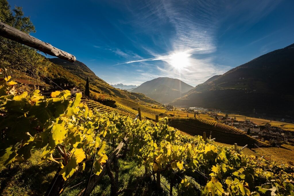 La cornice sono le Dolomiti imponenti e il paesaggio cucito ad arte intorno ai vigneti che si impennano dai 250 ai 650 metri di altezza.