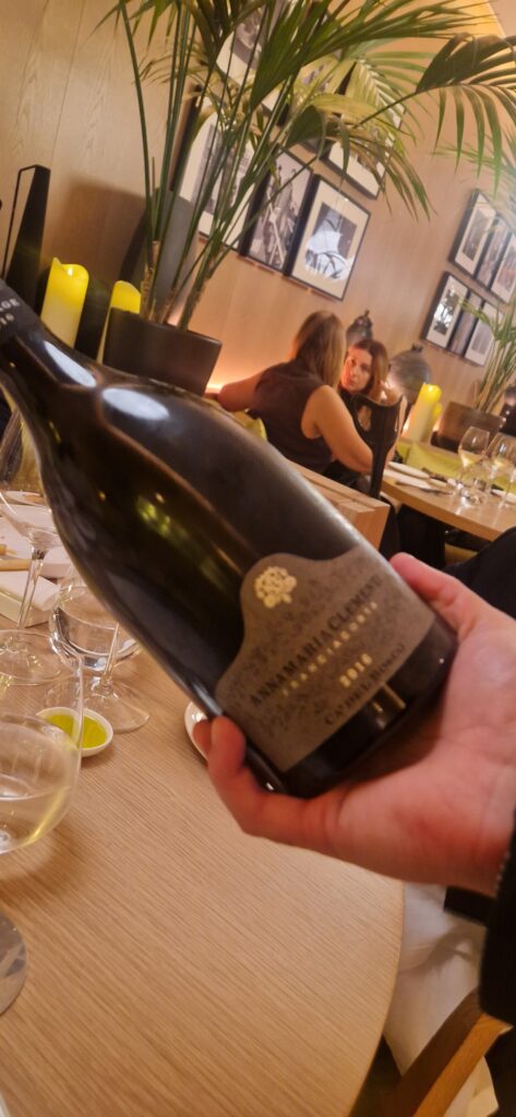 Fegatino di pollo e visciole (Gentile) – Un calamaro a Colonnata (Cerveni) – Burro e alici di Cetara (Gentile) a cui si è abbinato lo spumante Annamaria Clementi 2016. “Un vino importante per far iniziare bene la serata” ci suggerisce Luca e bisogna ammettere che mai tale proposito fu più azzeccato.