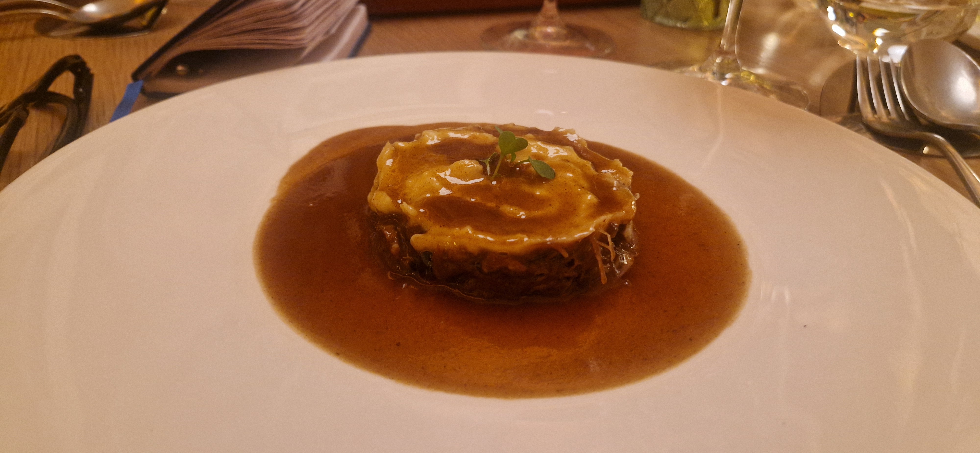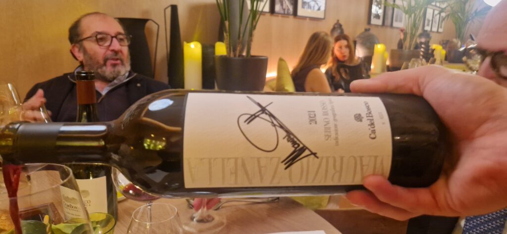 Un’emozione inaspettata la Coda di bue Parmentier (Cerveni) a cui si accompagna il “Maurizio Zanella” 2021. Un brasato succulento e goloso con un finale aromatico e speziato, che si scioglie in bocca facendoci sognare ad ogni assaggio e un vino, un taglio bordolese con prevalenza di Cabernet Sauvignon (50%) Merlot (25%) e Cabernet Franc (25%) che sa con la sua struttura ed eleganza accompagnare alla perfezione il piatto senza essere mai il protagonista.