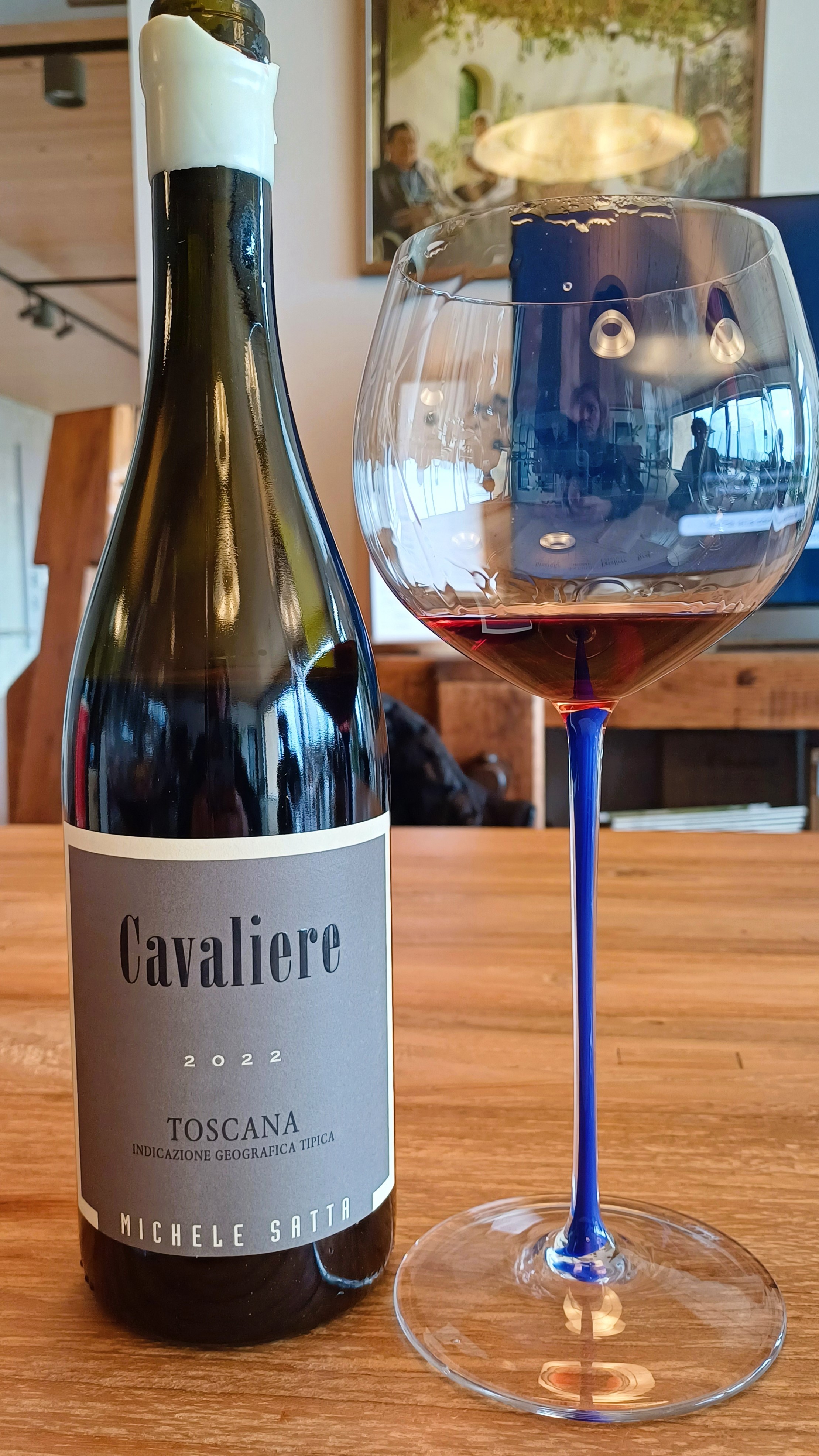 Cavaliere, Igt Toscana, 2022, Sangiovese in purezza. Il vino più “anarchico” della produzione, perché è l’anima di Michele Satta. Sangiovese o Cabernet? La partita è ancora aperta. Il cuore di Michele batte per il Sangiovese, da sempre l’unico, il suo, in purezza a Bolgheri, oggi con altre tre o quattro aziende che lo producono ed è il punto di riferimento del Sangiovese di costa e di mare. Fresco, fatto di frutto intenso e croccante e tanta acidità, senza rinunciare a una scia sapida piacevolissima. Ci si è arrivati eliminando i legni, credendo nel grappolo intero che regala volume e slancio. Dalla Vigna del Botro sulle argille che porta grande struttura e complessità, grazie anche un’annata calda.