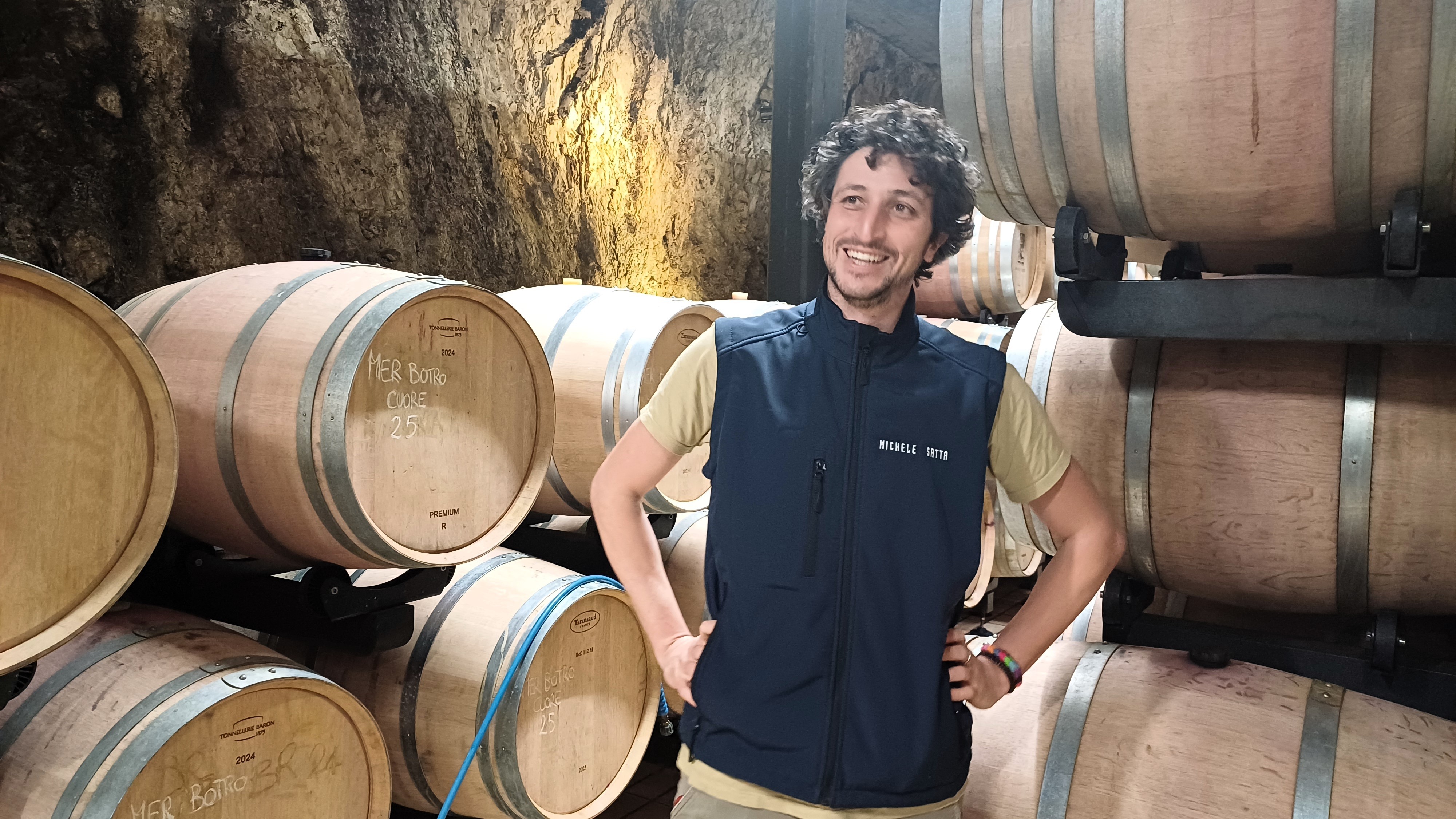 Ad accoglierci in azienda è proprio lui, Matteo, responsabile in cantina e grande conoscitore di queste terre, dove è nato e cresciuto. Fonda la sua esperienza su una vita collaudata e spesa in ambito agricolo e da sempre a contatto con la vite. Oggi più che mai al servizio di pratiche che pur mirando al trascorso di traguardi raggiunti, si rivolgono alla tecnologia per sdoganare sistemi talvolta cristallizzati. Immancabile un giro in cantina, dove si ripercorre la storia dell’azienda dagli anni ’80, in un ambiente affascinante, suggestivo.  Michele, di origini sarde, era tornato qui per vendere frutta e verdura, in particolare fragole, poi la sua traiettoria ha preso altri spunti perché è stato l’uomo giusto al momento giusto e nel posto giusto. Negli anni ’90 Michele Satta firma insieme agli altri noti la Doc Bolgheri e da lì parte la storia che ha portato i 25 ettari di oggi a una grande fama. Lungimiranza e fiducia pur in assenza di nomi nobili alle spalle, per un seguito di ex debiti tutti estinti di cui ancora oggi non si pente. Uno spaccato magnifico del territorio si può vedere all’interno della cantina, la roccia madre esposta come in una vetrina traduce quale sia la dimensione fruibile dello strato di terreno e il che spiega perché tante vigne si trovino sulle zone pedecollinari. Proprio per una mancanza di profondità e di presenza di blocchi di marmo, mix di calcare e ferro e argilla, ma per lo più rocce dure impenetrabili. La complessità del terreno deriva dall’erosione di questo strato iniziale e sulla parte più alta, andando poi a svilupparsi in modo disomogeneo per vini assai diversi. Le scelte agronomiche mutano di pari passo alle macerazioni, i tempi di vendemmia si adattano allo stress idrico delle piante o alla distensione del terreno che in basso è ricco di acqua e sostanza organica. L’abbandono della scelta biologica è stato dettato da problemi di malattie che non potevano più essere sostenibili con pratiche stringenti e a volte poco mirate rispetto alle reali necessità in vigna. Il lavoro in cantina è opera di amanuensi che silenti imprimono alle uve quelle caratteristiche proprie dei diversi contenitori a cui sono destinate, come il cemento e le anfore che permettono micro-ossigenazione ottimale, perfetta gestione di temperature e maggiore pulizia.