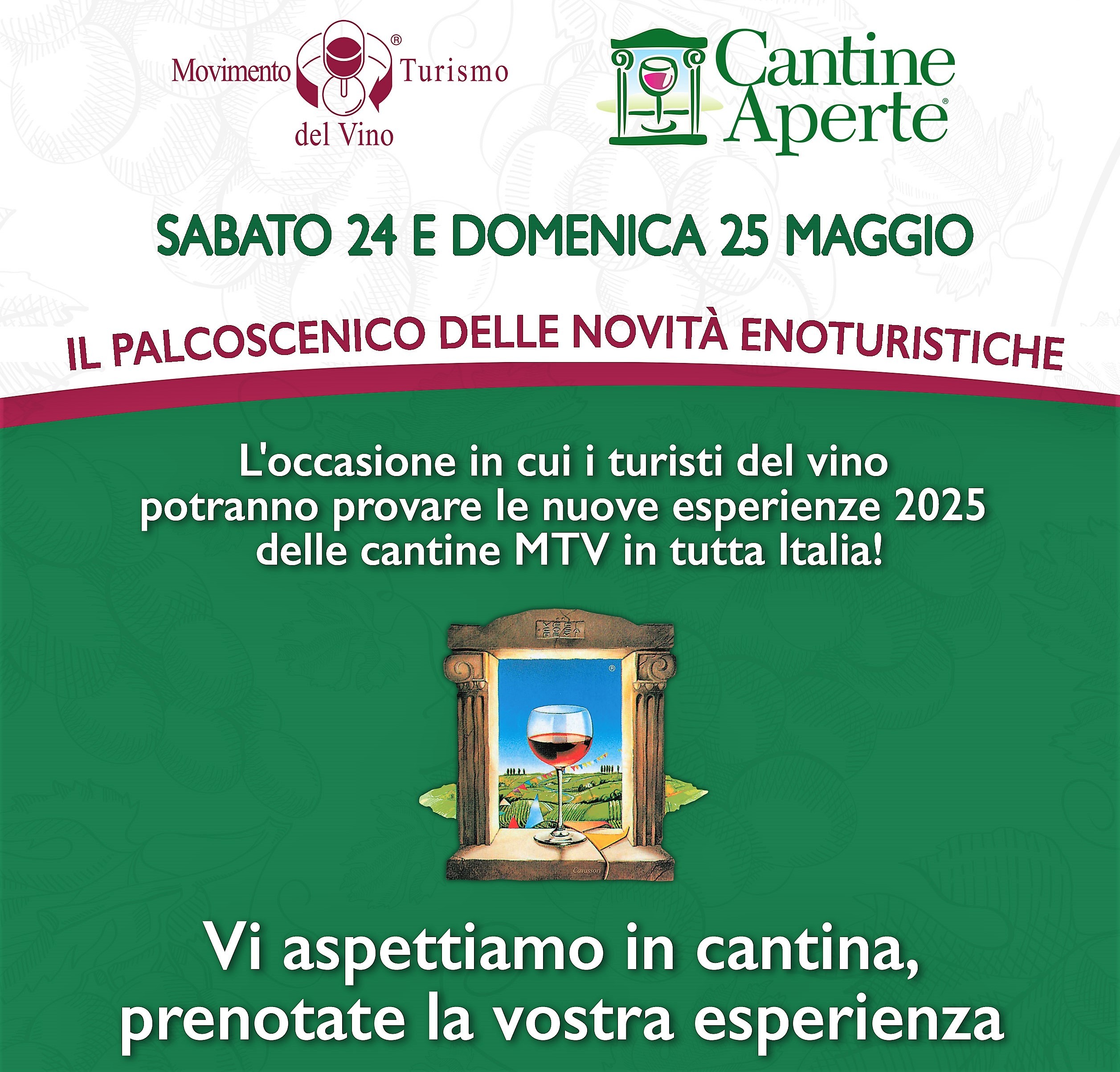 Stay tuned per scoprire tutti i programmi regionali di Cantine Aperte 2025, in corso di aggiornamento su: http://www.movimentoturismovino.it/