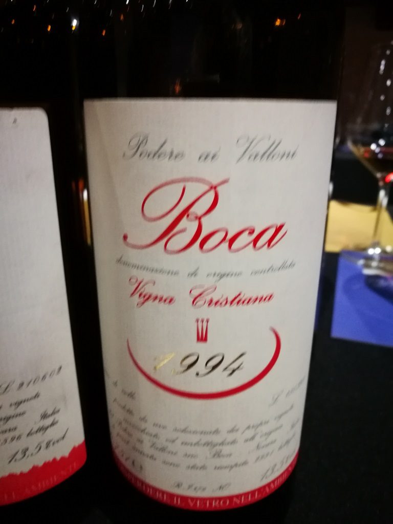 Tutto questo alla fine dà i suoi risultati, perchè assaggiando il Boca Vigna Cristiana di Podere ai Valloni non si degusta solamente un vino, ma anche un territorio. Le colline dove sono ubicate le vigne (480 metri s.l.m.) sono di origine vulcanica ed i terreni sono con dei ph bassi. Facendo un excursus dal 1994 al 2010, si è avuta la possibilità di capire come il Boca sia un vino ottenuto per affrontare il tempo. Durante la serata è stato possibile interagire con la produttrice avendo modo di poter discutere anche degli abbinamenti con il quale il Boca riesca ad avere il giusto connubio. Pietanze in riduzione, brasati, senza escludere formaggi stagionati.