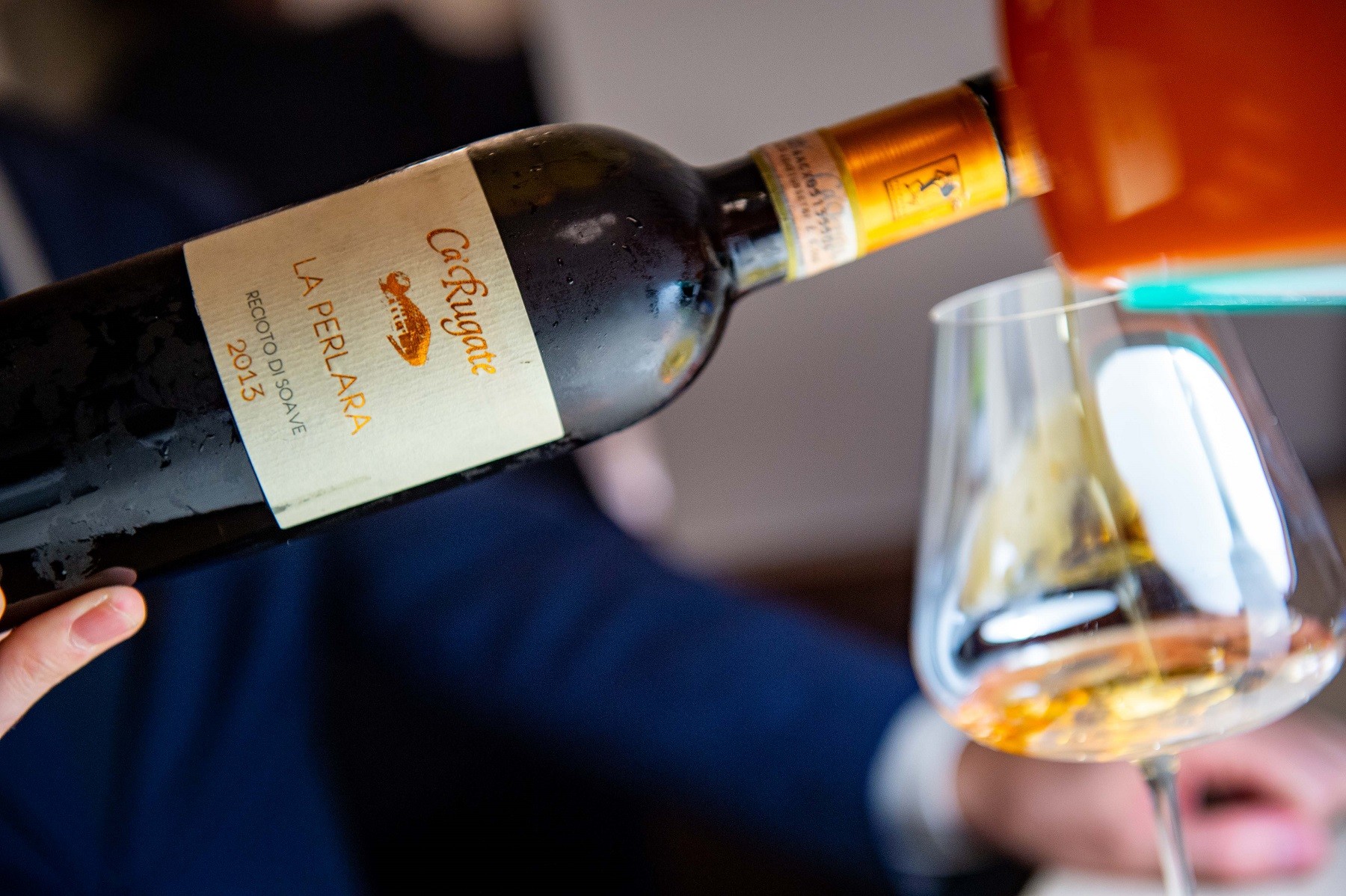 Recioto di Soave Docg La Perlara 2013, Cà Rugate. L’olfattiva si inebria di albicocche di tutti i tipi, gelato allo zabaione (uscendo fuori dai sentori a cui siamo abituati), ma quello che più ci affascina è il richiamo alla salsedine. Sapidità e freschezza giocano benissimo una partita in cui questo vino vince facilmente. Il colore è ambrato, la consistenza è densa ma la bocca molto leggera e lieve.