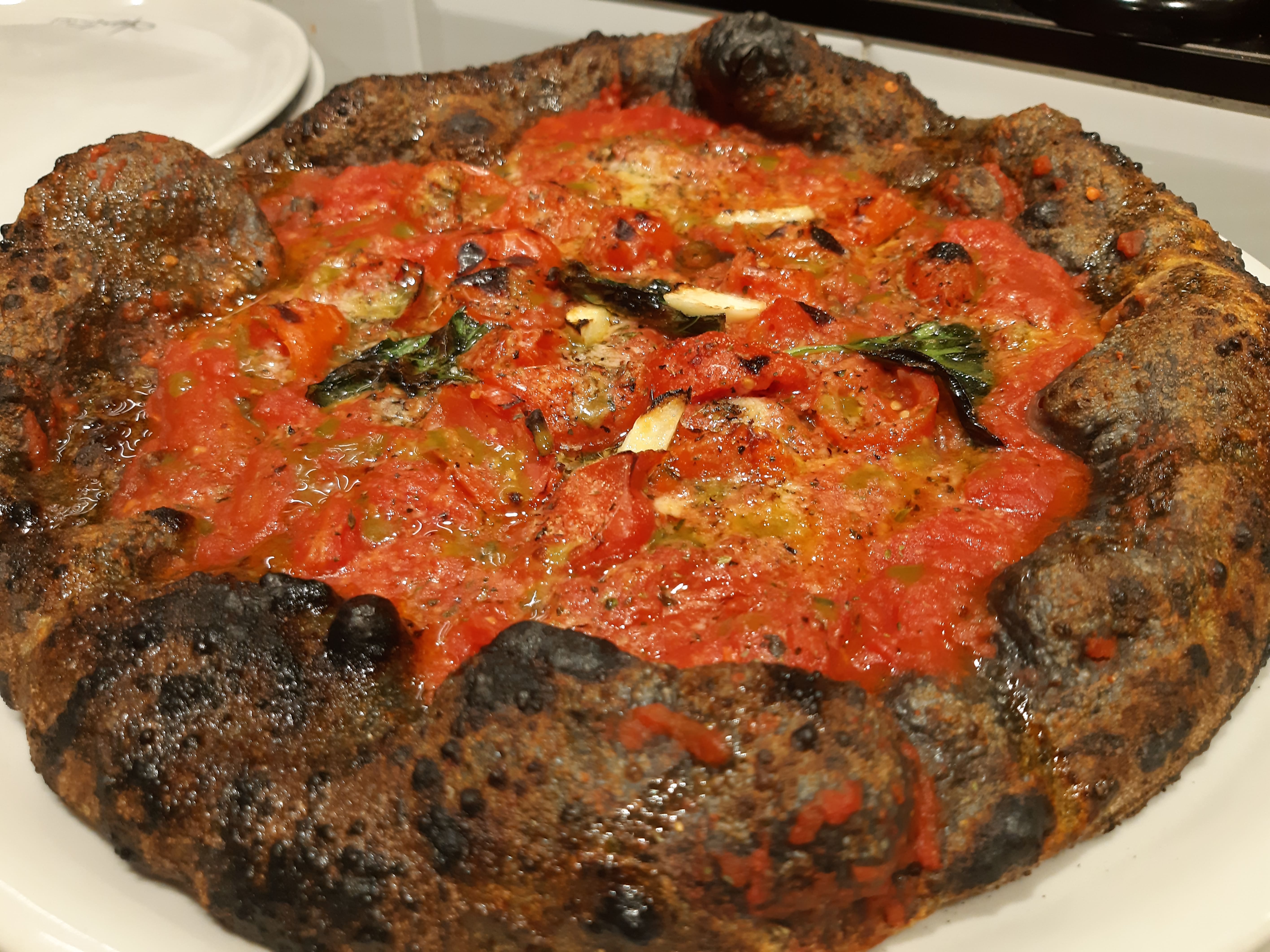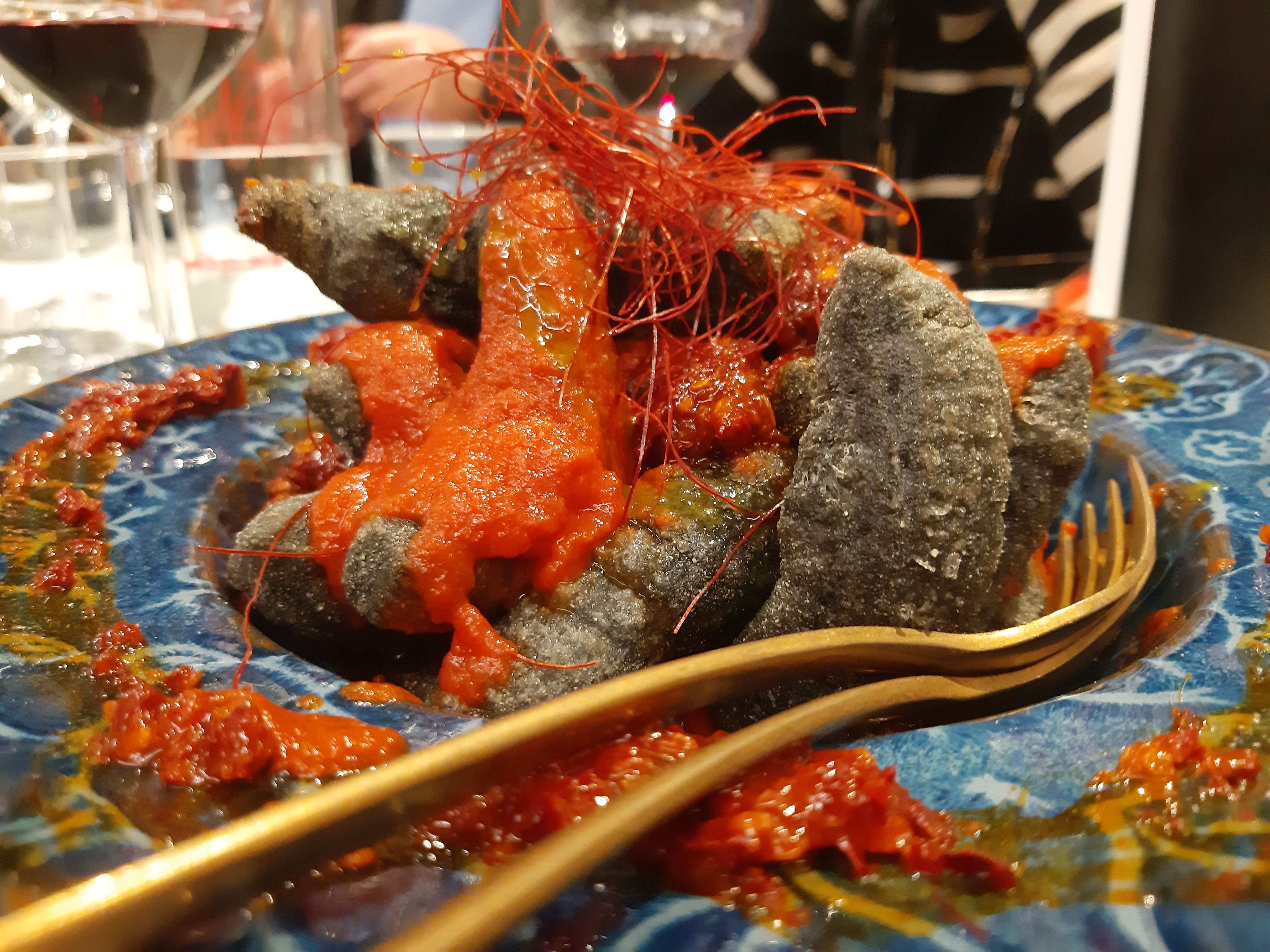 Quando le immagini rendono il concetto più di tante parole… Così i “lapilli”, strisce di pizza al carbone vegetale dedicati al Vesuvio con pomodoro Cesarino e ‘Nduja di Spilinga o la “marinera” con San Marzano frantumato a mano, il timbro gustoso dell’unione tra semplicità e innovazione, tra passato e futuro.