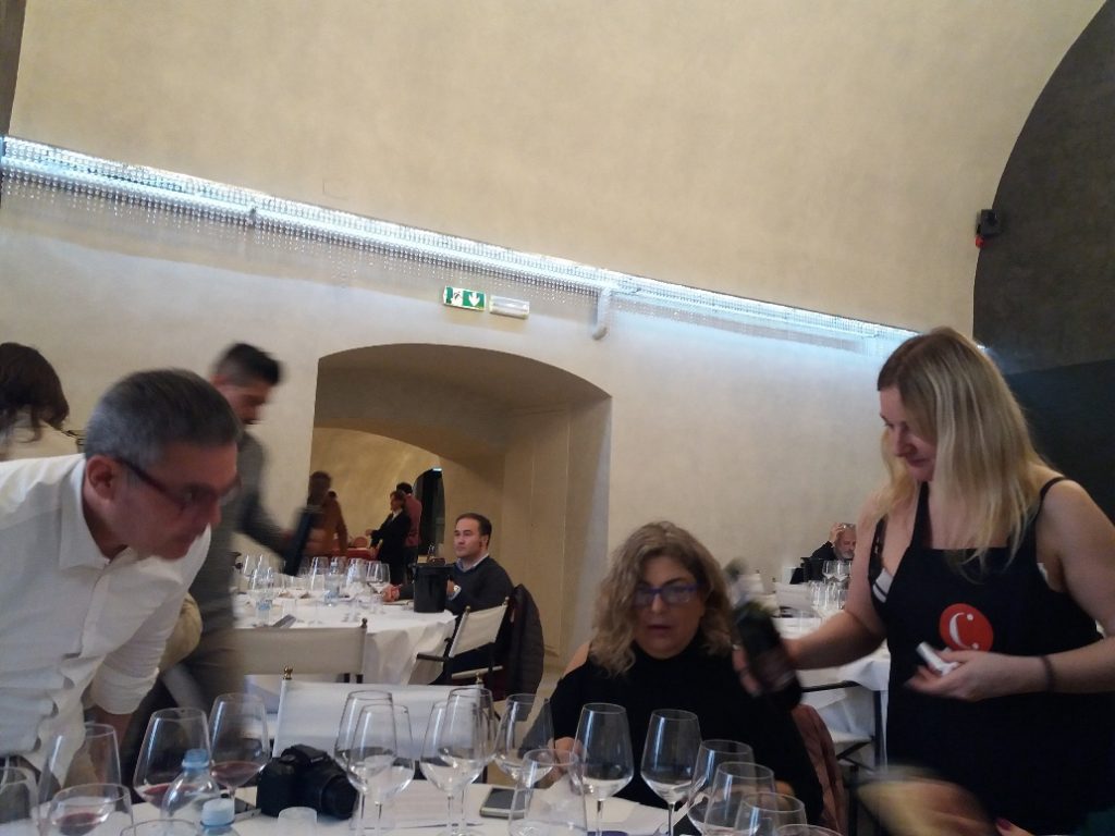 La stampa nella giornata di ieri ha potuto partecipare ad una degustazione in anteprima con servizio al tavolo di oltre 240 vini provenienti da Toscana, Romagna, Umbria e Lazio (presente con una sola azienda), di cui venti dedicati ad una retrospettiva dell’annata 2008 (questi ultimi per la verità, con qualche eccezione, non li abbiamo trovati affatto in forma)