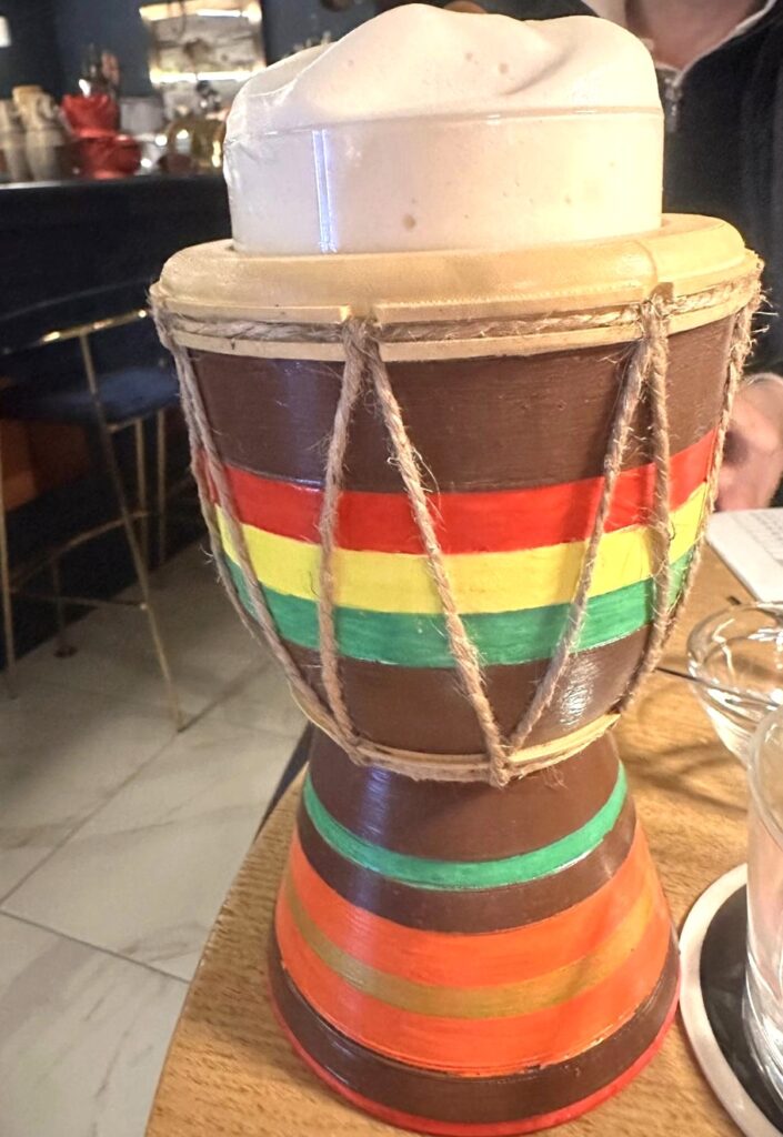 Tra le proposte analcoliche si distingue Cappadocia, servito in una scenografica mongolfiera: un drink a base di caffè tostato e speziato, profumato di cardamomo e cannella, che richiama i cieli punteggiati di palloni aerostatici della regione turca.