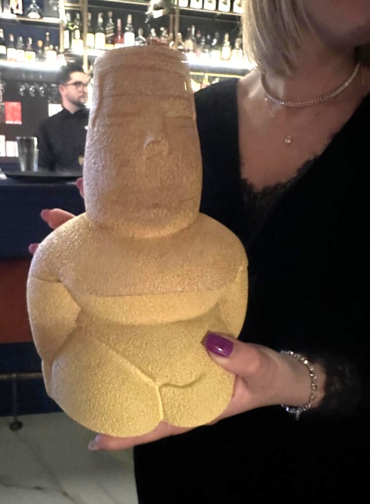 Tra le creazioni più evocative spicca Dea Madre, una delle signature del locale. Il cocktail celebra la fertilità della terra e i suoi frutti con un profilo fresco e leggermente acidulo, presentato in una composizione scenica che richiama la figura primordiale della divinità femminile.