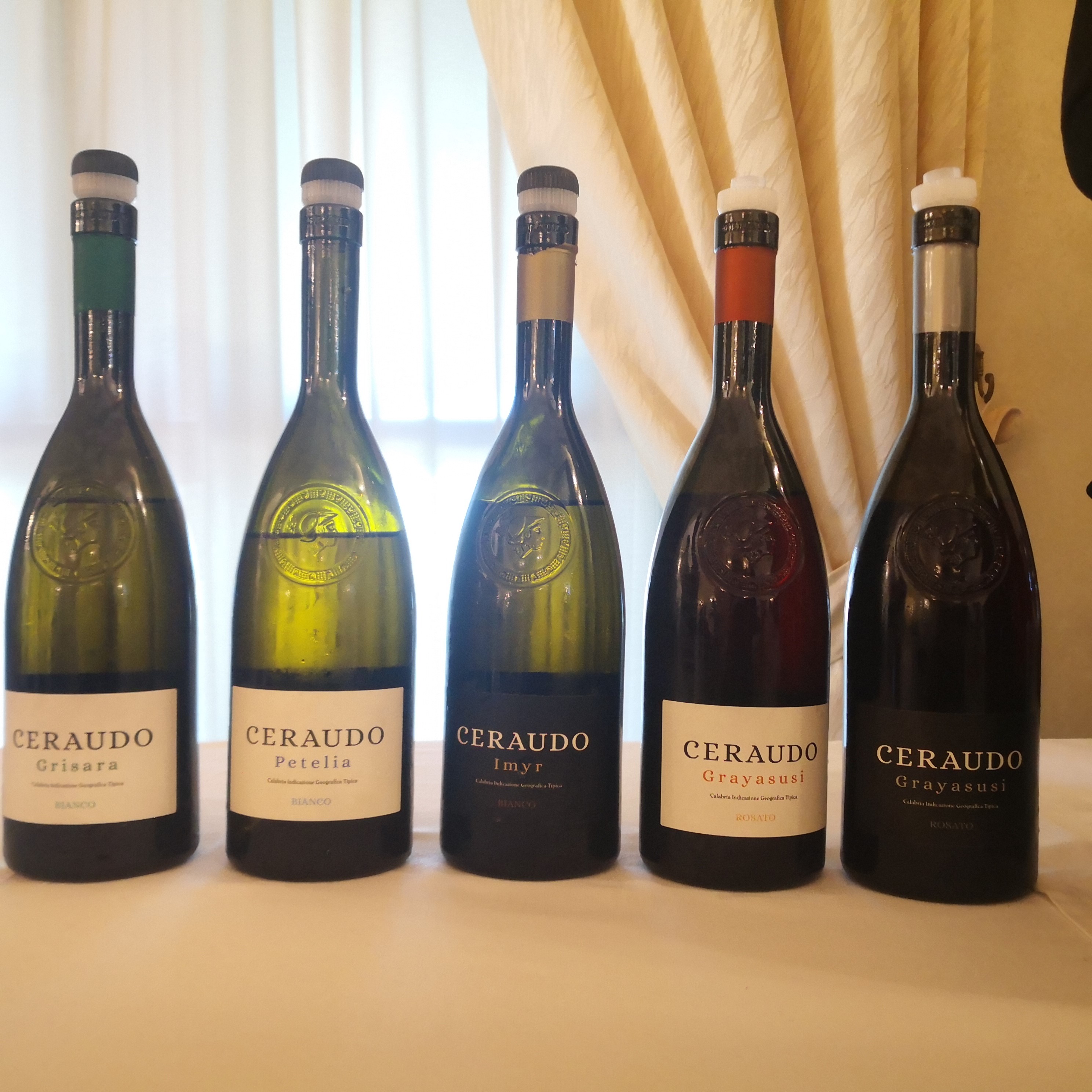 Nel 1973 in contrada Dattilo, nel territorio di Strongoli Marina, Roberto Ceraudo fonda l’azienda che oggi consta di sessanta ettari così suddivisi: trentasette di uliveti, venti di vigneti, tre di agrumeti e di orto. Rilevante quindi la presenza dell’olio e.v.o., più volte premiato, proveniente da 14.000 piante coltivate a Carolea, Tonda di Strongoli e Fidusa. Anno importante è il 1991 con la certificazione biologica ICEA e quello successivo con l’inizio della produzione del vino in bottiglia. Chi si recasse in azienda, prima di varcare la soglia, è accolto da una scritta posta su una meridiana che riporta queste esatte parole: Felice è colui che fa felice gli altri. Il motto di famiglia, assolutamente condivisibile, è quello di Roberto cui oggi si affiancano i figli Giuseppe, Caterina chef una stella Michelin del ristorante Dattilo, e Susy che abbiamo conosciuto, solare e gentilissima, primogenita e pianificatrice aziendale. Nove sono le etichette prodotte (otto assaggiate) per un totale di circa 100.000 bottiglie l’anno, tutte con l’indicazione di Calabria I.g.t.