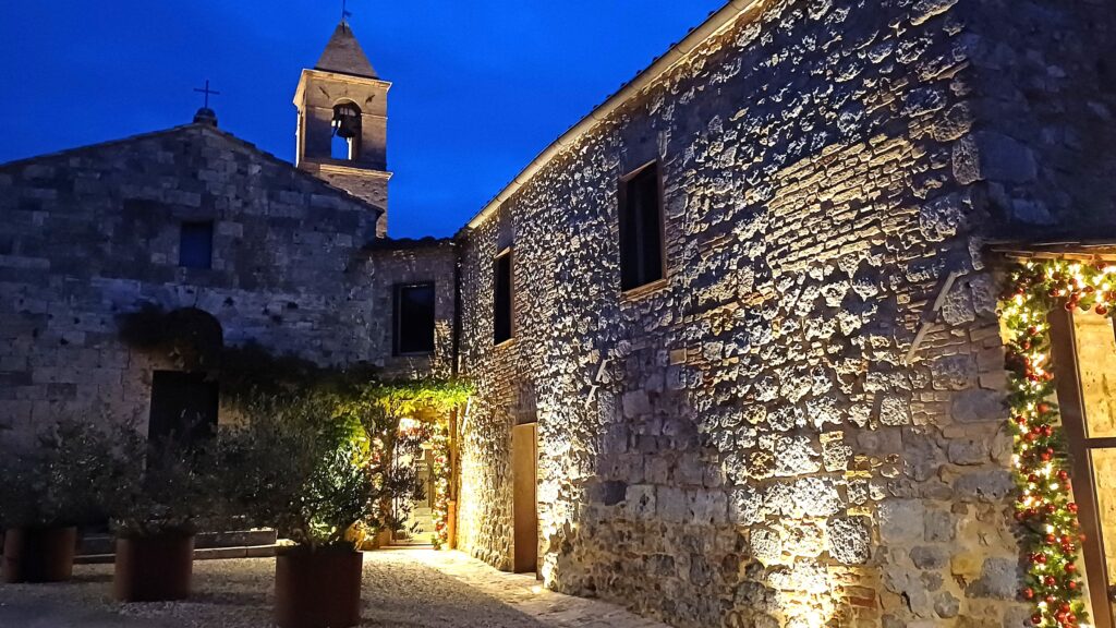 Ad oggi una parte è dedicata all’accoglienza che è un vanto del tutto giustificato. Il ristorante, La Cantinetta, curatissimo e seguito da uno chef stellato che però cucina senza pensare alle stelle ma solo allo spirito del luogo. Le stanze moderne e di un lusso che non strilla, in una struttura che nell’anima non è stata modificata. Gli esterni sono atti a momenti di relax e riposo immersi in un verde circostante luminoso e brillante delle vallate vestite di vigneti. Una piscina in travertino si affaccia su un paesaggio ampio e arioso. Ancora esistente la vecchia chiesetta medievale, dove i fratelli da piccoli facevano i chierichetti, oggi ristrutturata ripropone le sue note originali, a memoria di un tempo passato che non si dimentica. Nonostante i costi e gli sforzi per mantenerla, rimane a disposizione di piccole cerimonie, nel rispetto della sua antica funzione.