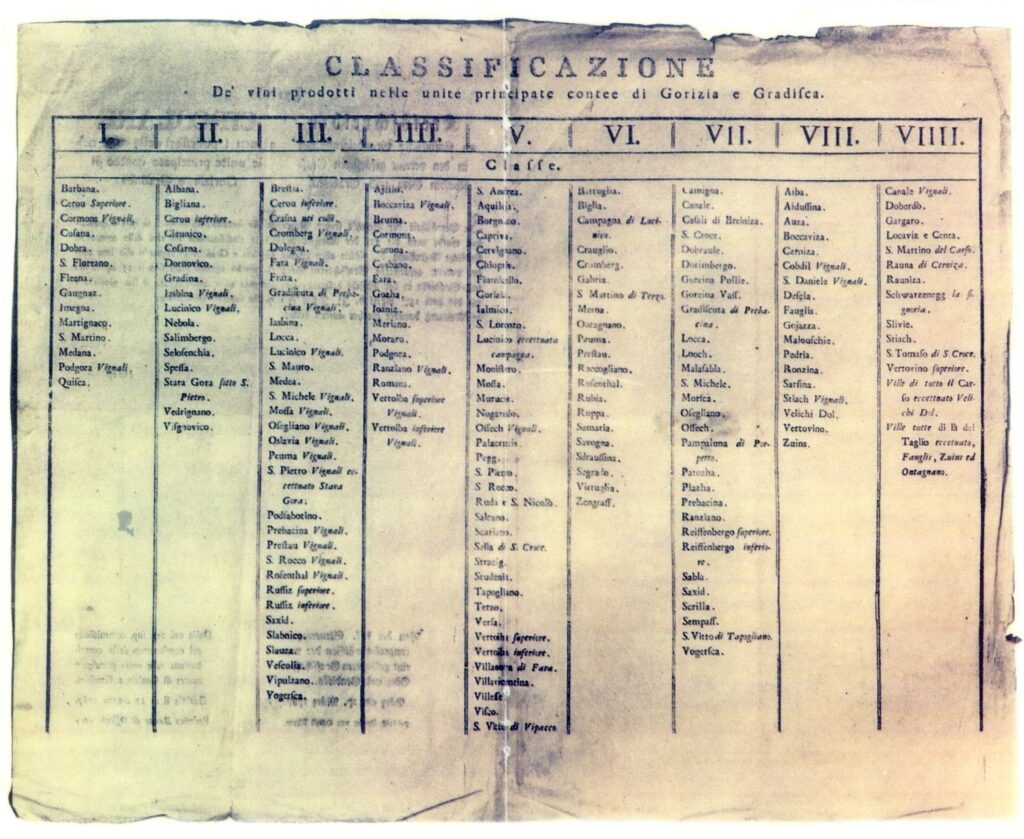 Le radici sono anche quelle della vite che qui alberga dall’epoca preromana. I secoli hanno determinato una stratificazione di vestigia e testimonianze, ma noi inizieremo con un impero più moderno, quello degli Asburgo, con la prima sistematizzazione e classificazione gerarchica dei luoghi più vocati.