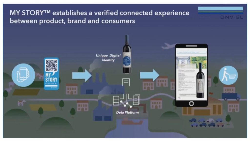 Ci sono stati in passato ad alcuni tentativi di “certificazione” della singola bottiglia di vino: una cantina della Val D’Aosta ha realizzato una etichetta con applicato un mini depliant con le caratteristiche del vino contenuto nella bottiglia (ma il depliant era lo stesso per tutte le migliaia di bottiglie di quel vino). Oggi, sfruttando le tecnologie più moderne, si può arrivare ad “identificare” il contenuto della singola bottiglia. Diciamo subito che la certezza assoluta non è ancora raggiunta (lo sarà mai?) ma con l’App “My Story™”, realizzata dal gruppo DNV GL, un grosso passo in avanti è stato fatto.