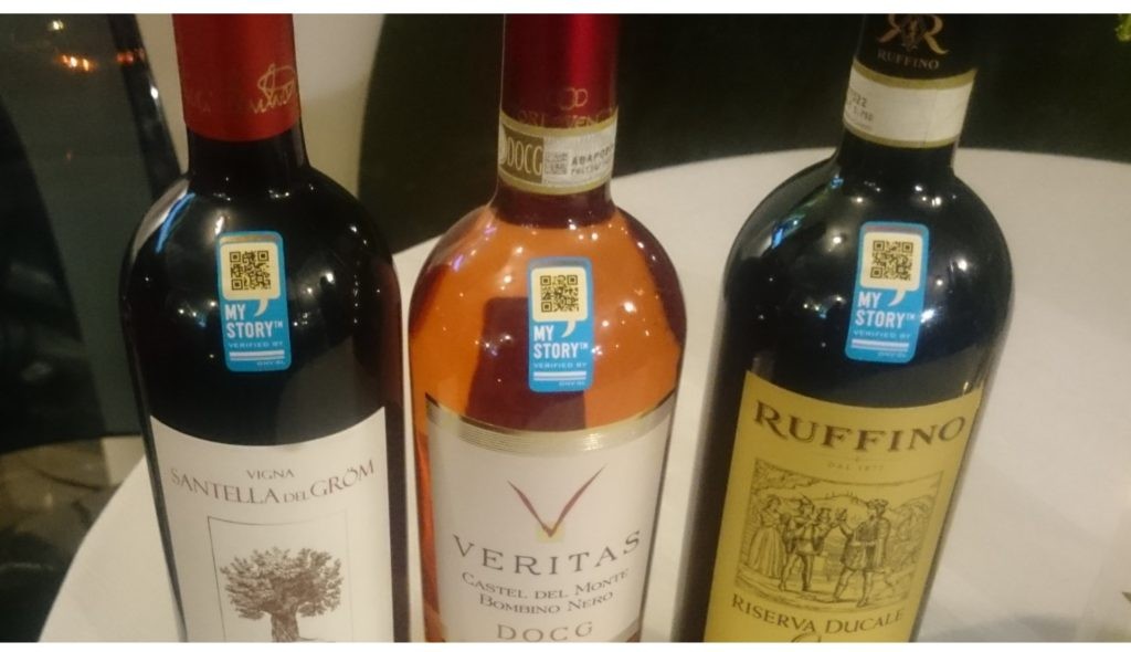Attivando sul proprio cellulare una app per la lettura del QR- code e inquadrando il corrispondente codice sulla bottiglia di vino, si può immediatamente leggere che, ad esempio, la bottiglia di Santella del Gröm è una delle X-mila imbottigliate il 29 dicembre 2016; oppure, scansionando l’etichetta del Veritas si può identificare il suo numero di lotto e scoprire che è l’unico rosato in Italia con la denominazione DOCG, mentre dal QR-code presente sulla bottiglia del Riserva Ducale Oro 2014 si scopre che ha ottenuto il riconoscimento “Tre Bicchieri 2019” del Gambero rosso. La differenza con le informazioni che si potrebbero leggere su una etichetta “tradizionale” è innanzitutto che queste informazioni sono certificate dal sistema My Story™, e quindi con un alto grado di affidabilità che il contenuto della bottiglia sia proprio quello che leggiamo sullo schermo del cellulare; inoltre il numero di informazioni (testi, foto, mappe con contenuti anche interattivi) che abbiamo a disposizione, relative alla bottiglia ma anche e soprattutto all’azienda, sono enormemente maggiori di quelle stampabili su un’etichetta cartacea o su un folder: