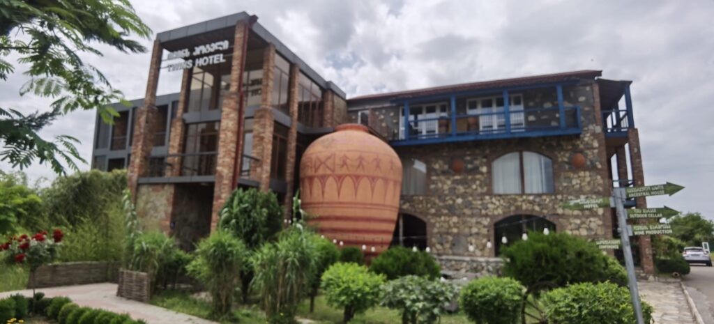 La produzione è interamente ispirata ai metodi tradizionali, ma non rinuncia a una visione moderna dell’enoturismo. La tenuta ospita un albergo, un ristorante, una piscina, una sauna e un museo del vino che consente ai visitatori di scoprire l’intero processo di vinificazione georgiana in modo immersivo, attraverso grandi anfore aperte e installazioni didattiche.